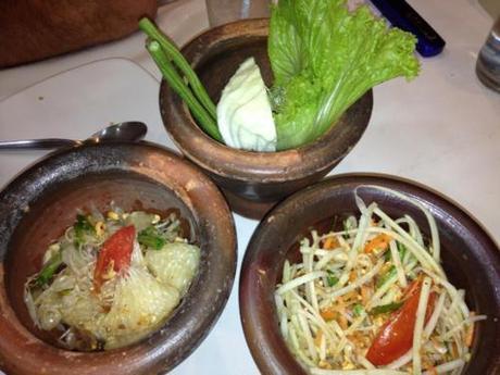 On n’oubliera pas, l'invité principal de tous les repas, on peut même le prendre telle une gâterie entre les repas, l'inévitable somtam. « tam ma khou en lao », la salade de papaye verte appelé aussi salade pokpok, autre nom donné à cette salade rappelant le son du pilon tapant au fond de la jarre confectionnée de terre cuite, outils indispensables à la préparation de ce met incontournable. Il est ici concocté à base de pla la et de crabes des rizières macérés à ne pas confondre avec le somtam thaï à base de « caouèts grillées » et crevettes naines séchées et chose importante sans pla la. Le somtam qu'il soit thaï ou pla-pou comme en ISAN