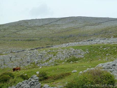 Après un copieux Irish Breakfast, départ pour le Burren, dans le comté de Clare sur la côte Ouest de l'Irlande. Le trajet par nationales et autoroutes est sans surprise. Le circuit dans le Burren commence à Corofin où un paysage vallonné et parsemé de pierres grises apparaît. Le Burren est un immense plateau calcaire balayé par les vents où s'étendent de larges plaines verdoyantes quadrillées par des murs de pierres et des rochers. Dans la partie Nord Ouest, ces plaines laissent place à de grandes étendues de plaques de calcaires, où les rochers, les failles et les quelques plantes poussant entre ces cailloux dessinent un paysage gris.
