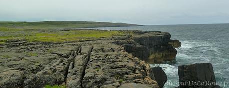 Après avoir passé Black Head , la pointe rocheuse saillant dans la mer, la route devient plus verdoyante. Si vous avez le temps, une petite randonnée grimpe à flanc de colline et permet de découvrir un ancien fort de l'Âge de fer (Cathair Dhun lorais) et un panorama exceptionnel sur les îles d'Aran. À Ballyvaughan, une bifurcation permet de retourner à l'intérieur des terres. Le paysage rocheux est plus vallonné, la route serpente entre les champs de roches. Le peu de monde sur cette route en cette fin d'après-midi rend ce paysage désolé encore plus mystérieux.