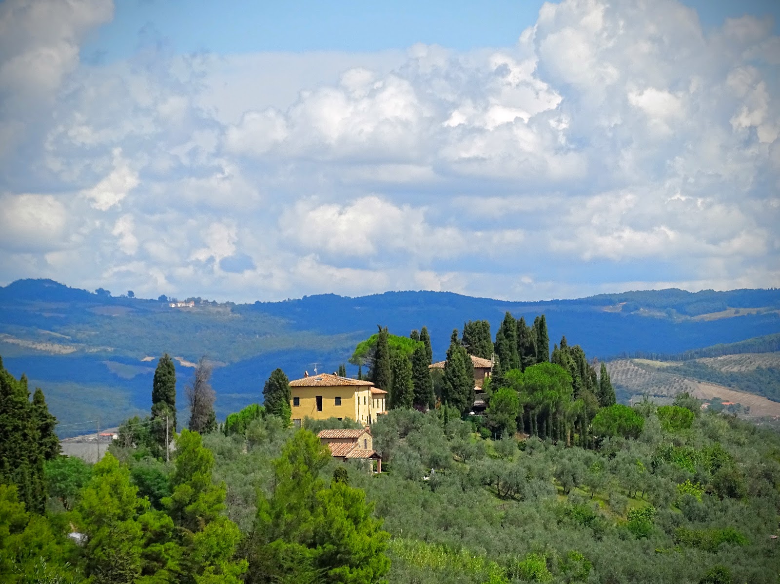 Après quelques kilomètres sur l'autoroute, nous quittons celle-ci pour rejoindre une route secondaire qui nous offrira des paysages d'une grande beauté. C'est un plaisir que de suivre ce long ruban d'asphalte qui sillonne la campagne toscane aux 50 nuances de verts.